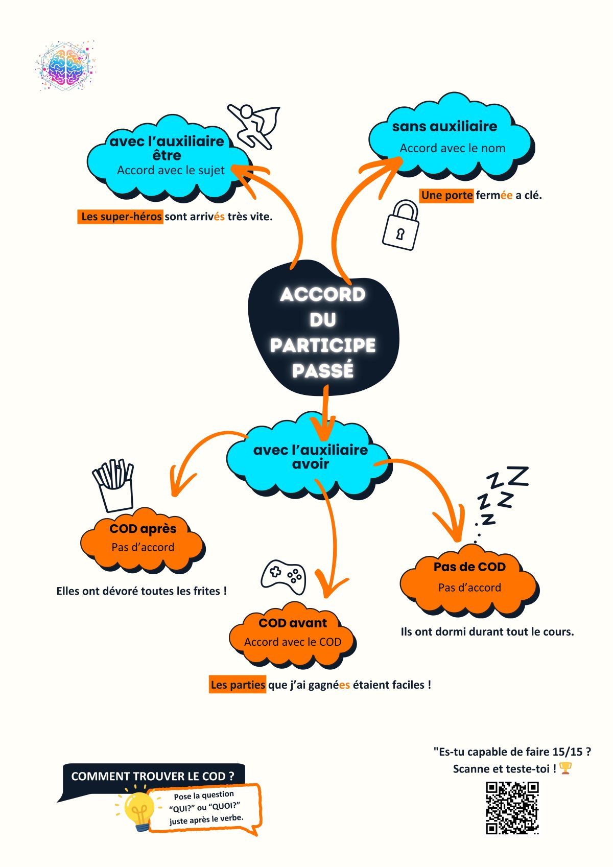 Voici la fiche "Mind Map" de l'accord du participe passé que vous trouverez dans le guide complet (le GPS).